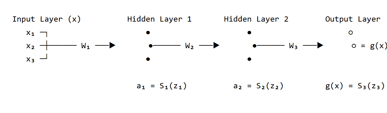One defining feature of a feed-forward neural network is that data moves in only one direction – forward. There’s no looping back or feedback. Each layer feeds its output to the next, step by step, until the final prediction is made. This is why it’s called “feed-forward.”